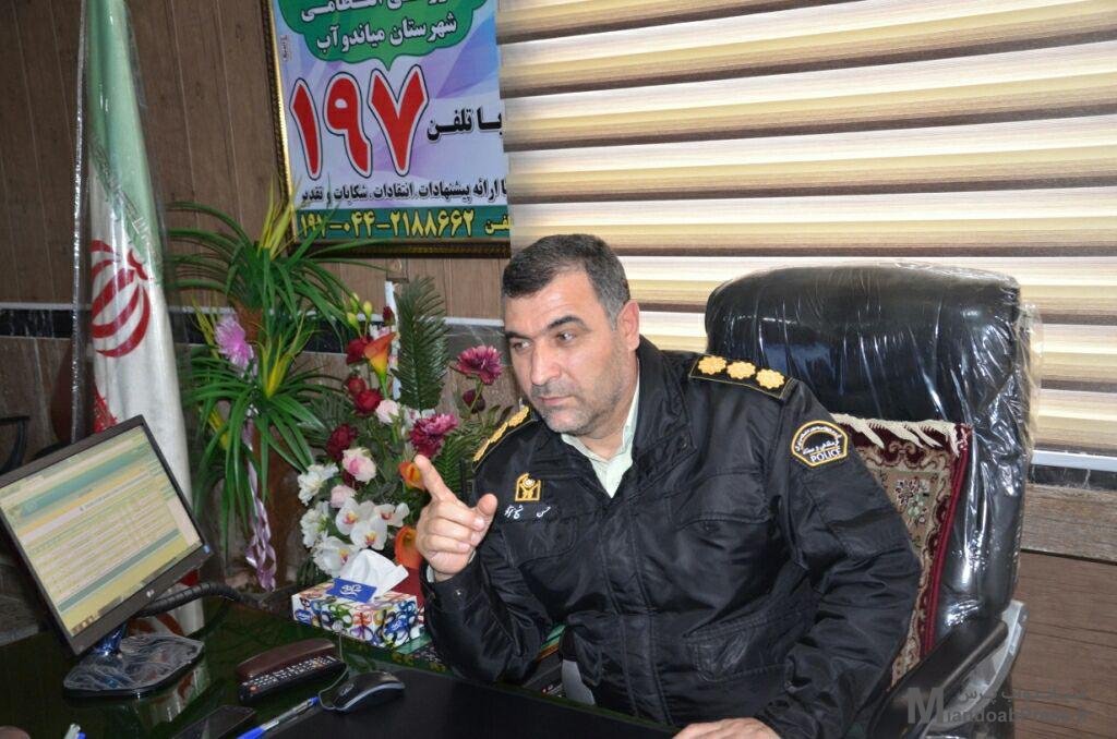 پایگاه خبری میاندوآب پرس(miandoabPRESS.ir):فرمانده انتظامی شهرستان میاندوآب ازبرخورد قاطع پلیس در چهارچوب قانون بااخلال گران نظم وامنیت درچهارشنبه آخرسال خبرداد.